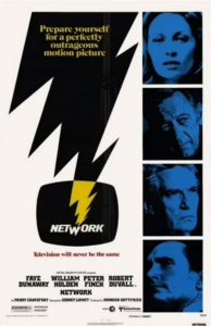 “A television network cynically exploits a deranged former anchor’s ravings and revelations about mass media for its own profit.”