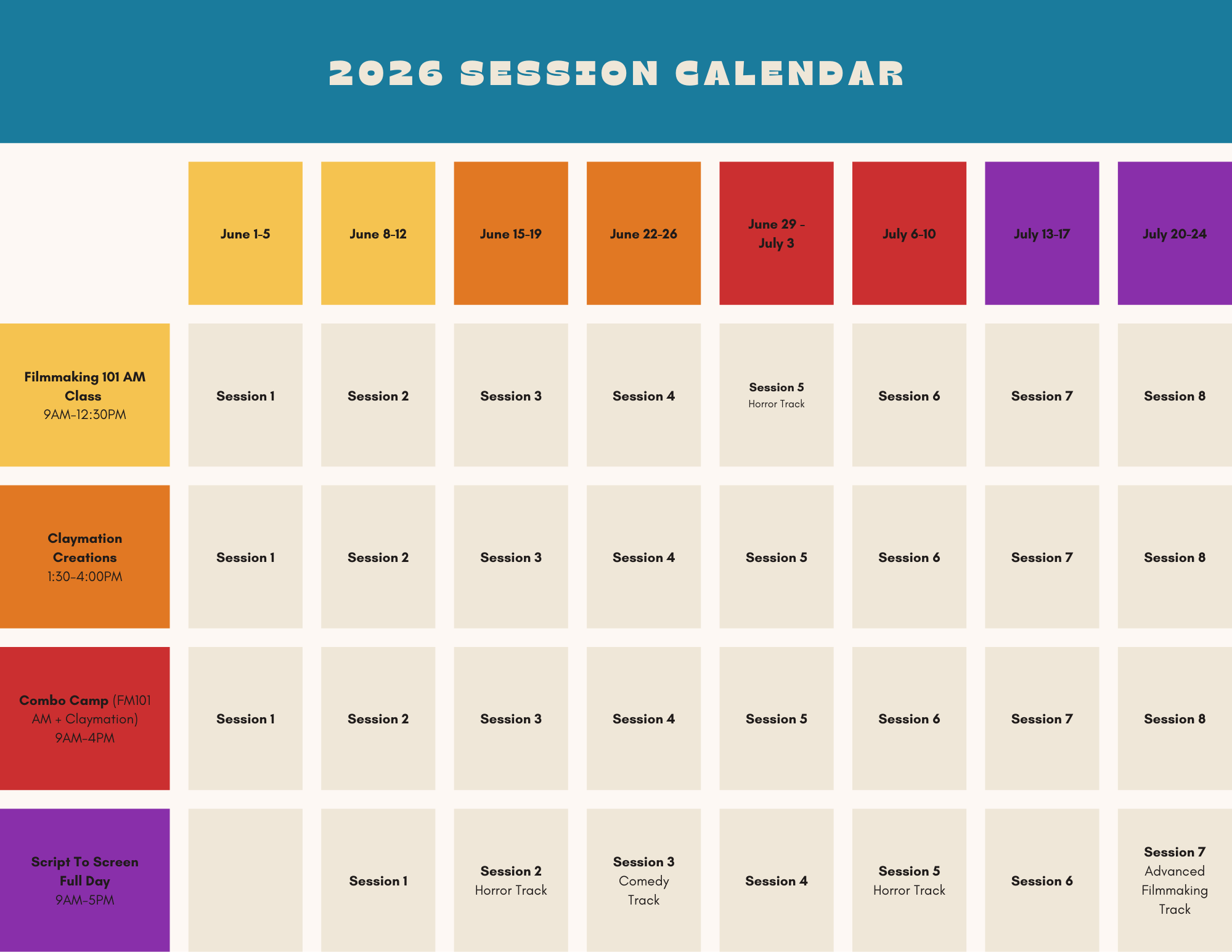 We offer full day combo camps for Filmmaking 101 and Claymation Creations. Learn more about our Combo Camps below!